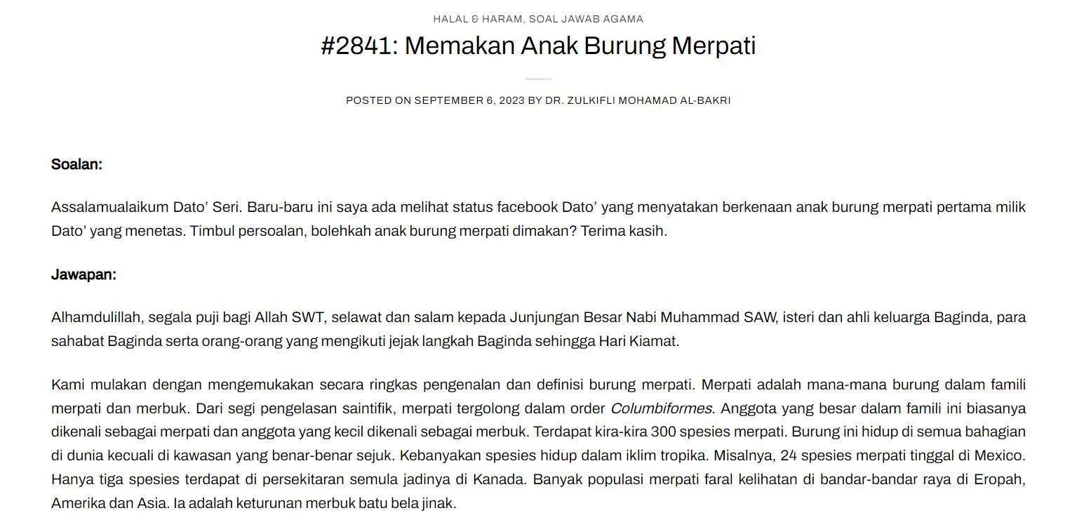 Selain itu, terdapat beberapa warganet yang turut mempersoalkan kenapa burung merpati menjadi pilihan untuk dimakan.