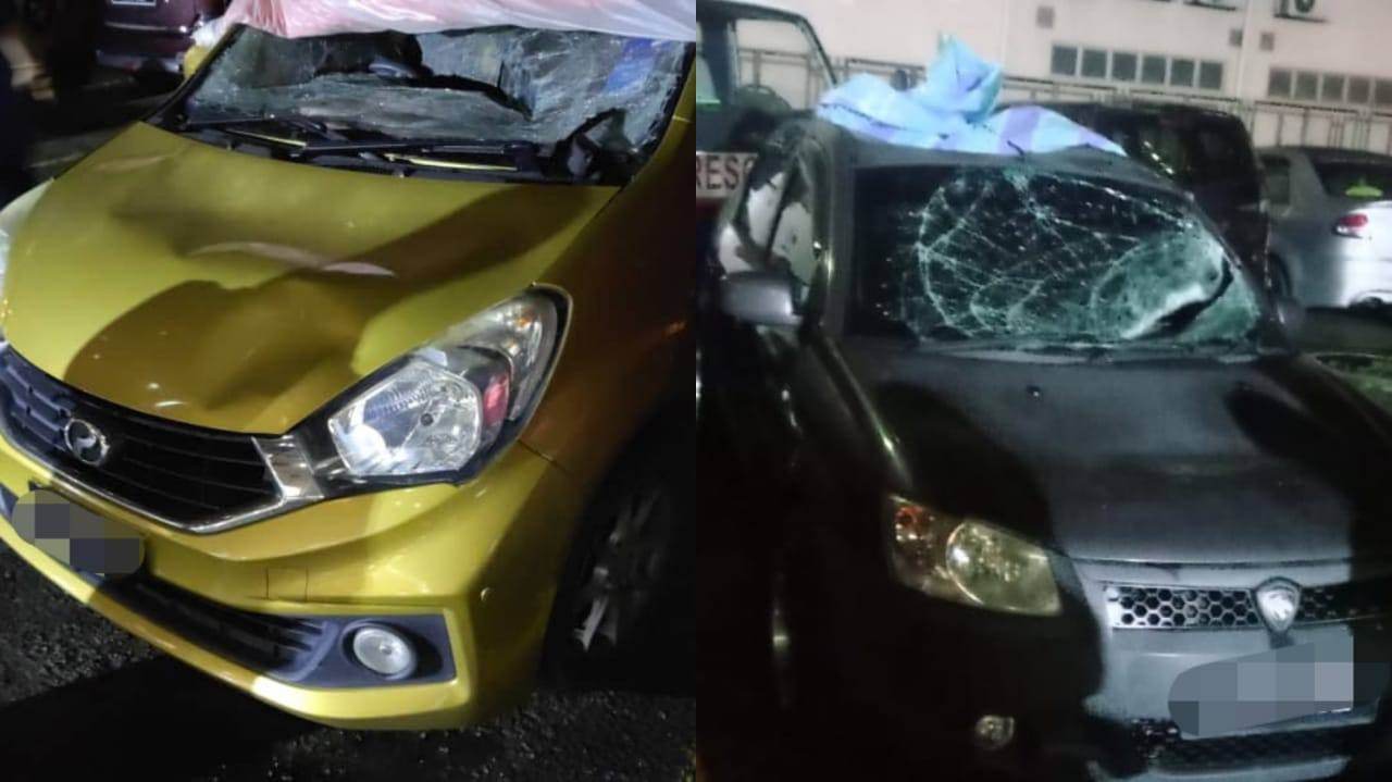 Serpihan tangki air yang jatuh telah menimpa kenderaan di bawah blok apartment terbabit.