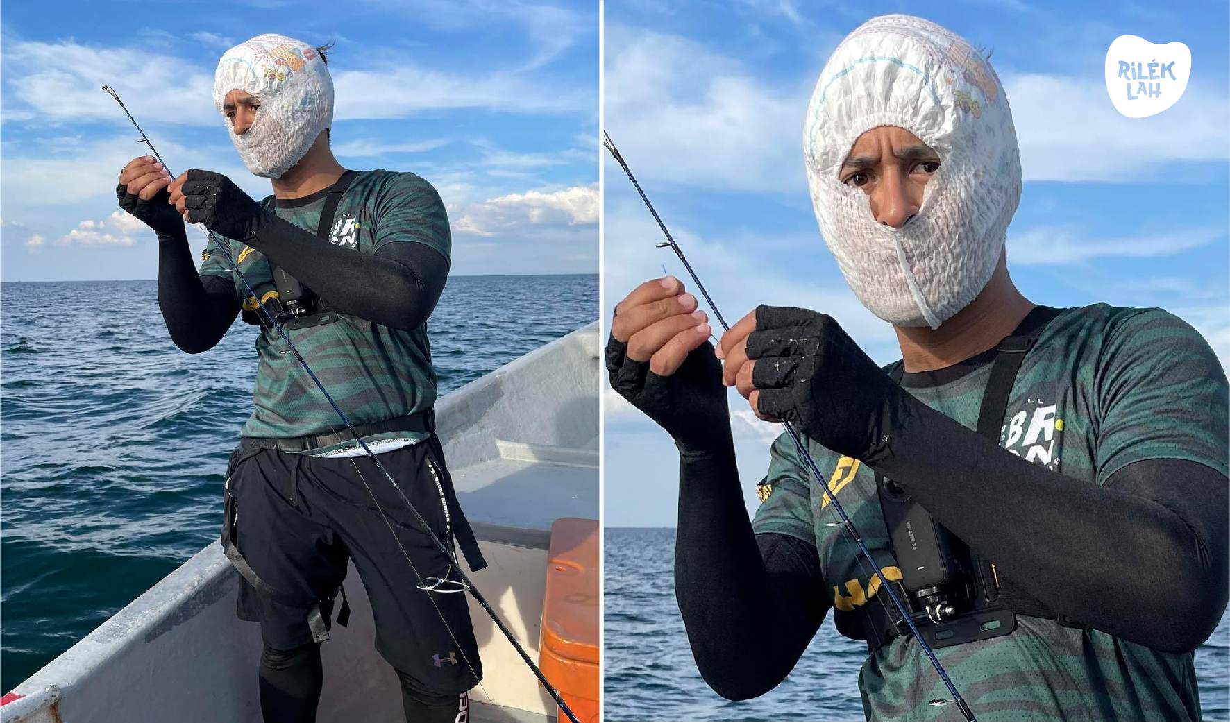 [VIDEO] "Bila Minta Bini Pack Barang Mancing" - Suami Redha Pampers Anak Jadi Topi Tengah Laut!