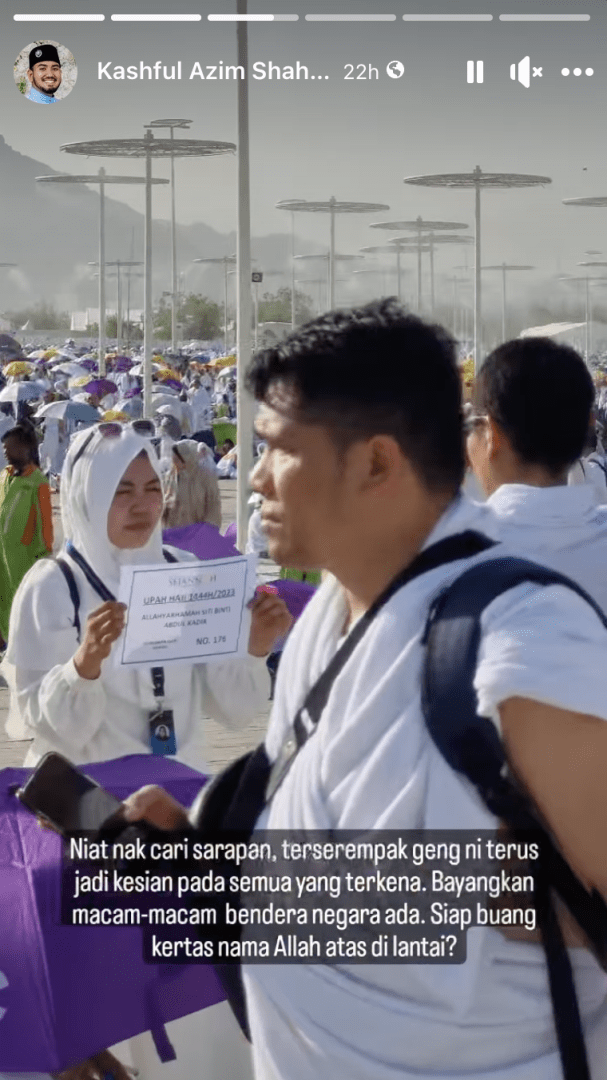Menerusi video berkenaan, kelihatan seorang inidvidu berkongsi situasi yang sedang berlaku di padang Arafah.