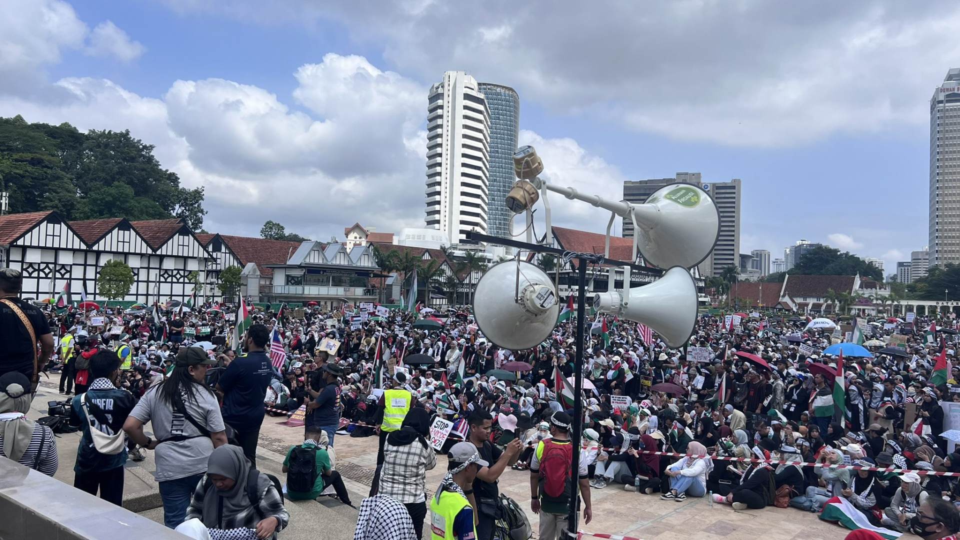 “Kami berulang kali diminta untuk tidak melaungkan Allahuakbar. Alasannya, himpunan ini adalah himpunan kemanusiaan yang melibatkan orang bukan Islam.