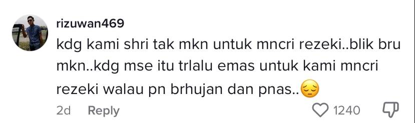 Menjengah ke ruangan komen video tersebut, ramai yang sebak melihat situasi yang dialami oleh rider tersebut sehingga dikatakan tidak mempunyai waktu untuk menjamah makanan kerana terlalu sibuk.