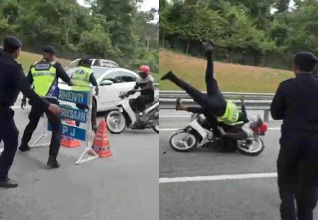 Terdahulu, tular rakaman di media sosial memaparkan penunggang motosikal itu yang tidak memperlahankan kenderaannya ketika hampir dengan kawasan sekatan.