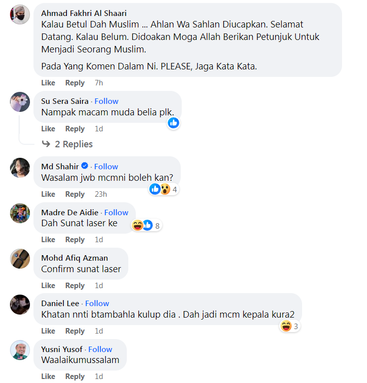 Tinjauan di ruangan komen juga mendapati rata-rata pengikut memberikan sokongan moral jika ahli perniagaan tersebut benar-benar telah memeluk agama Islam.